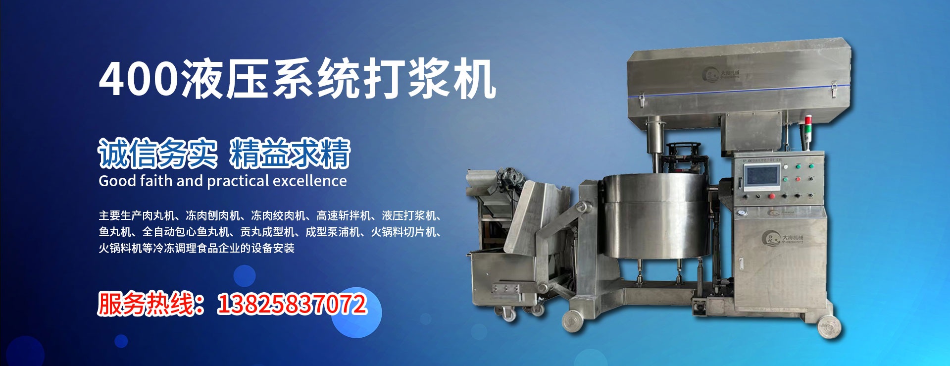 汕頭市大海機(jī)械設(shè)備有限公司是一家集設(shè)計(jì),研發(fā),生產(chǎn),銷(xiāo)售為一體的食品機(jī)械設(shè)備生產(chǎn)公司,企業(yè)造就了一支素質(zhì)高,技術(shù)過(guò)硬的技術(shù)人員和員工隊(duì)伍,擁有先進(jìn)的制作工藝和精良的設(shè)備,確保了大海食品機(jī)械產(chǎn)品的優(yōu)良品質(zhì)。主要生產(chǎn)肉丸機(jī),凍肉刨肉機(jī),凍肉絞肉機(jī),高速斬拌機(jī),液壓打漿機(jī),魚(yú)丸機(jī),全自動(dòng)包心魚(yú)丸機(jī),貢丸成型機(jī),成型泵浦機(jī),火鍋料切片機(jī),火鍋料機(jī)主等冷凍調(diào)理食品企業(yè)的設(shè)備安裝,工藝設(shè)計(jì)及老廠(chǎng)技術(shù)改造等成套輸出終端解決方案。