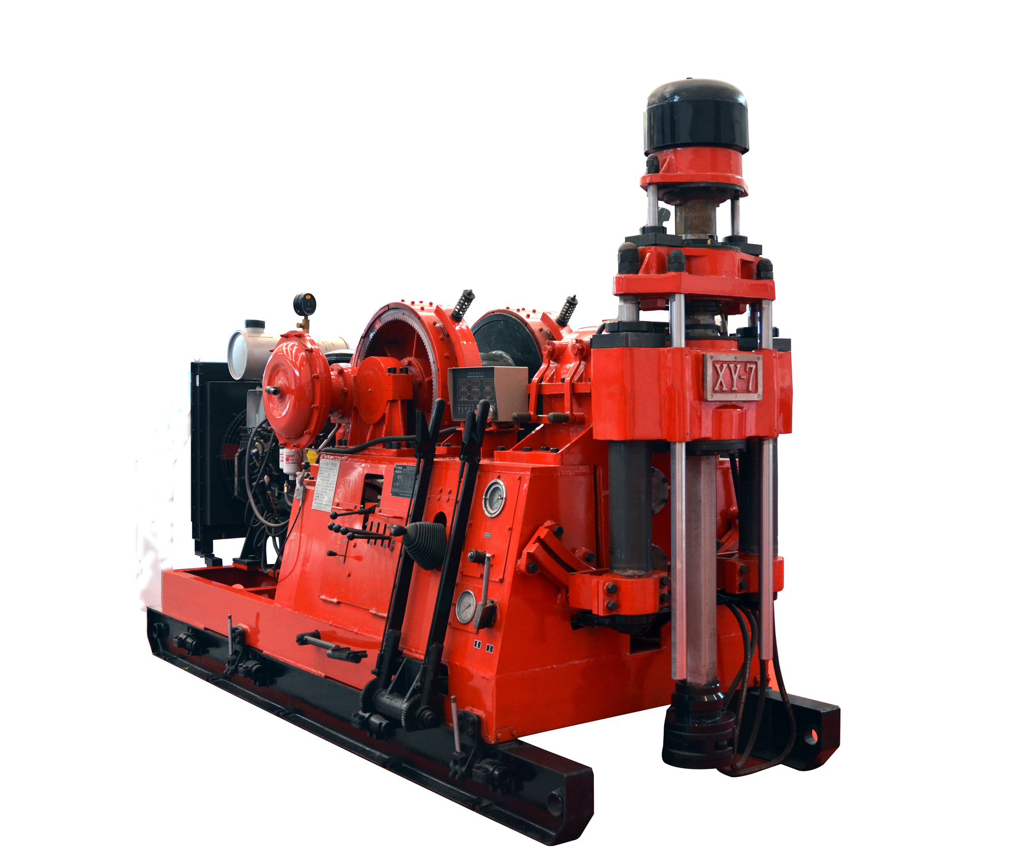 XY-7型鉆機是我公司新研發的機械傳動液壓給進立軸式巖心鉆機,主要用于金屬、非金屬固體礦床勘探及金鋼石小口徑鉆進,亦可用于大口徑合金鉆進;可鉆垂直孔和傾斜孔,也可用于水文、油氣田的勘探及工程鉆孔。XY-7型鉆機的研制,填補了我公司立軸式巖芯鉆機2500米左右深孔鉆孔空白,完善了我公司立軸式巖心鉆機的系列化,方便用戶選擇。